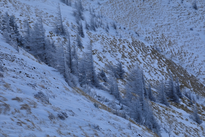 山の谷間に風雪に耐えた木々が並んでいる光景に魅せられた。