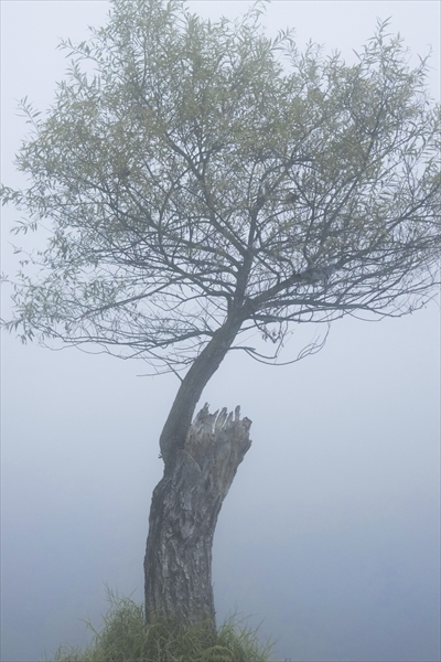 ぽつんと立つ一本の木。寂しそう、、でも朝霧が、、、