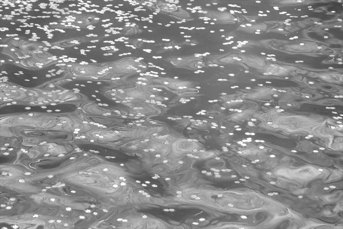 見事に咲く桜も素敵ですが、散り際の花筏がすきです。