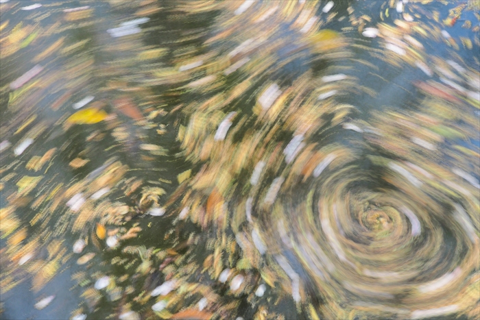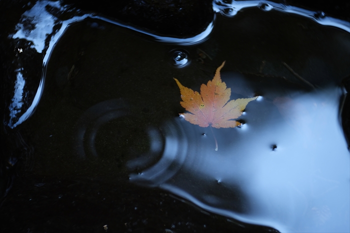 山奥の清流での流れた紅葉の葉を撮りまくりましたが、レンズも同時に捕えていました。
