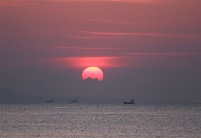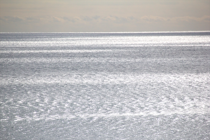 自宅・ベランダからの光景です。珍しい海の表情でした。