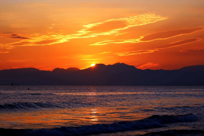 真っ赤に燃える相模湾での落日にはなかなか出会えない。伊豆半島が美しかった。