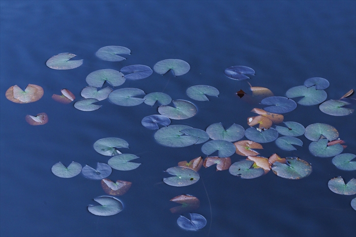 秋を迎えた蓮沼の静かなたたずまい。色温度を4000k にしてさらに際立たせた。